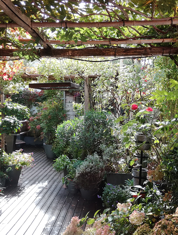 Créer ma propre structure me permet d’effectuer des entretiens de terrasses parisiennes. Un exercice d’équilibriste où l’on doit connaître autant les besoins de chaque plantes, que des causes des maladies qui surviennent avec le temps. Dans ces jardins suspendus, il est bien difficile d’arbitrer pour qu’aucune des plantes n’en fasse disparaître une autre. Un appauvrissement bien dommage que j’ai appris à maîtriser : certaines des terrasses où j’œuvre ont été créées par d’autres paysagistes il y a 20 ans et sont toujours aussi florissantes !